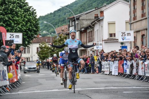 Matis Louvel (VC Rouen 76) remporte l’arrivée de la 4ème et dernière étape à Saint-Girons au sprint.